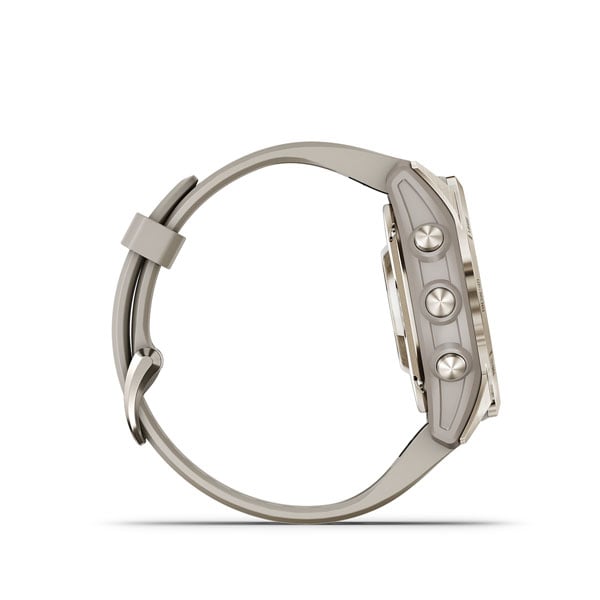 Epix 2 Pro 42 mm is an optimized design perfectly fitted for smaller wrists that oozes style. The rugged built Epix features an illuminated 1.2 scratch-resistant sapphire AMOLED display with a responsive touchscreen. traditional buttons for better control and a 42 mm fiber-reinforced polymer case. Pick your choice of a steel or titanium bezel and rear cover to match your mood. The ruggedly stylish Smartwatch is tested to US military standards for thermal. shock and water-resistance.