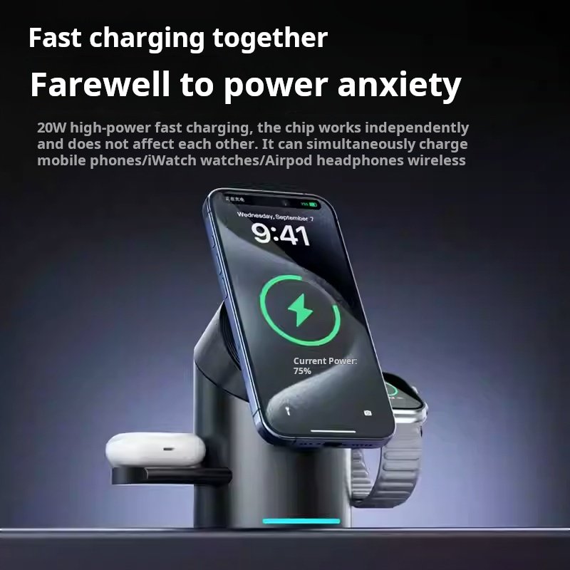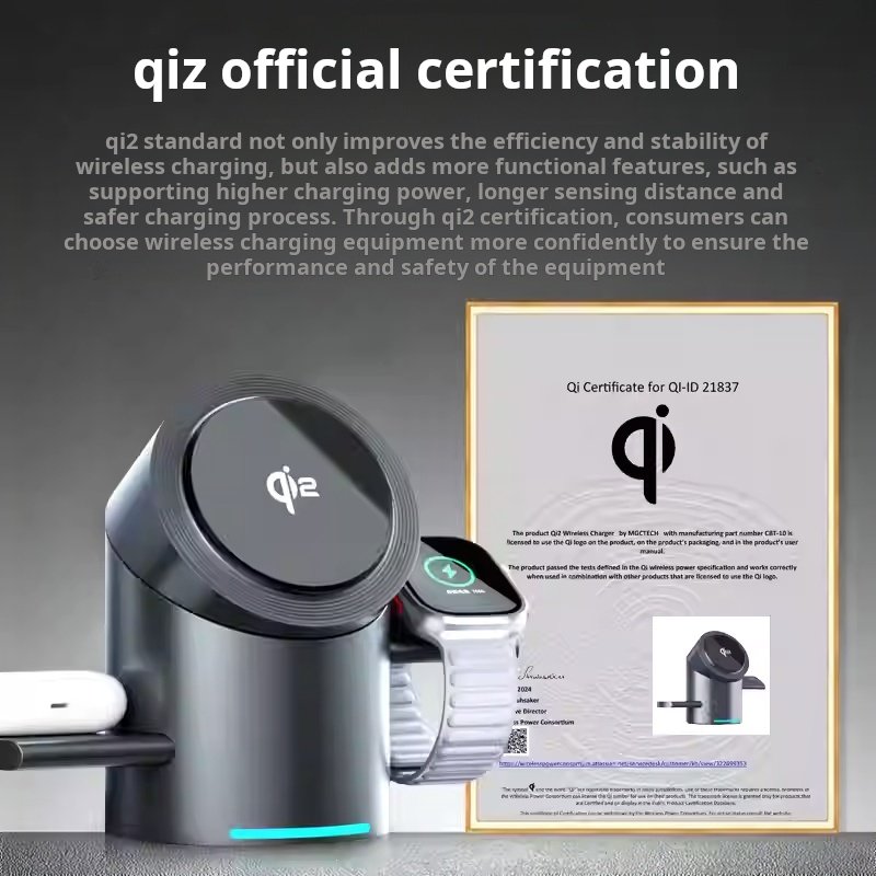 Qi2 certified wireless charger 3 in 1 for Android Apple magnetic fast charging phone headset watch charging stand base