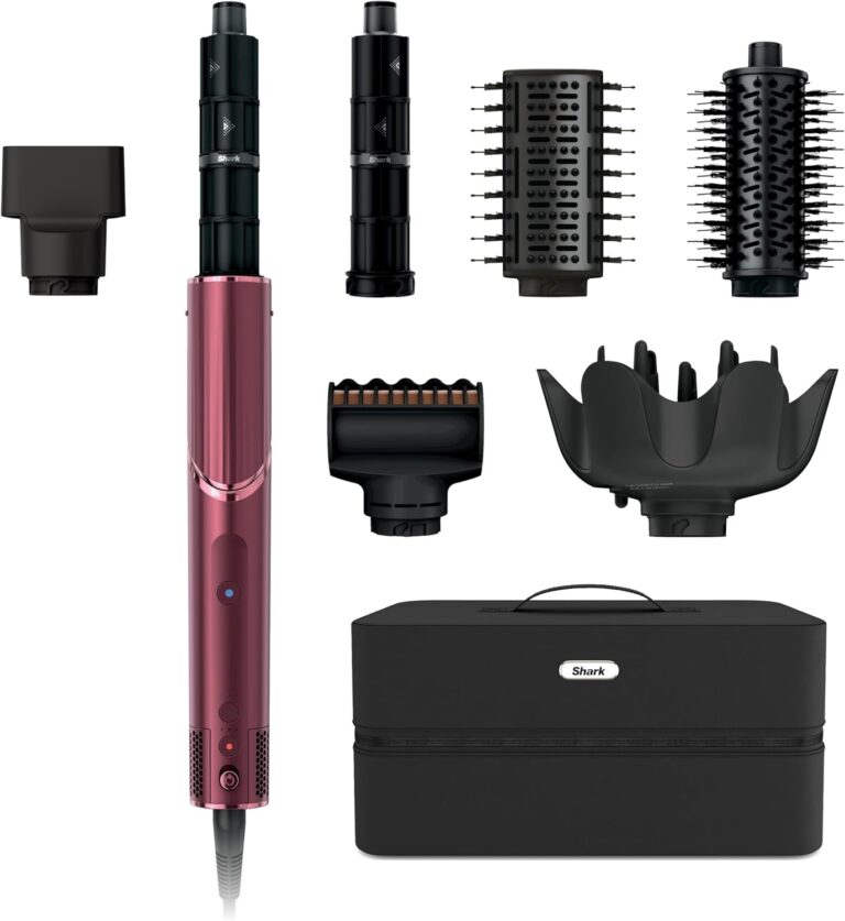 Shark FlexStyle Air Styling & Drying System. Powerful Hair Dryer Brush & Multi-Styler with Auto-Wrap Curlers. Diffuser. Paddle Brush. Round Brush. Concentrator Attachment. Black Cherry. HD457CR