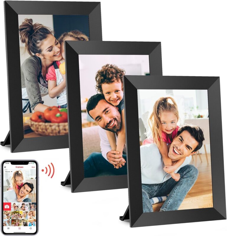 Frameo 10.1 Inch WiFi Digital Picture Frame. 1280×800 HD IPS Touch Screen Photo Frame Electronic. 32GB Memory. Auto-Rotate. Wall Mountable. Share Photos/Videos via Frameo App from Anywhere 3 Pack