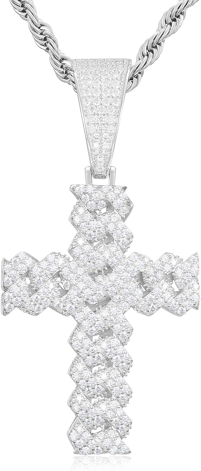 Moissanite Cross Necklace 2.7 Carat Iced Out Moissanite Cross Pendant 925 Sterling Silver Cross Chain Necklace D Color VVS1 18k Gold Plated Christian Pendant
