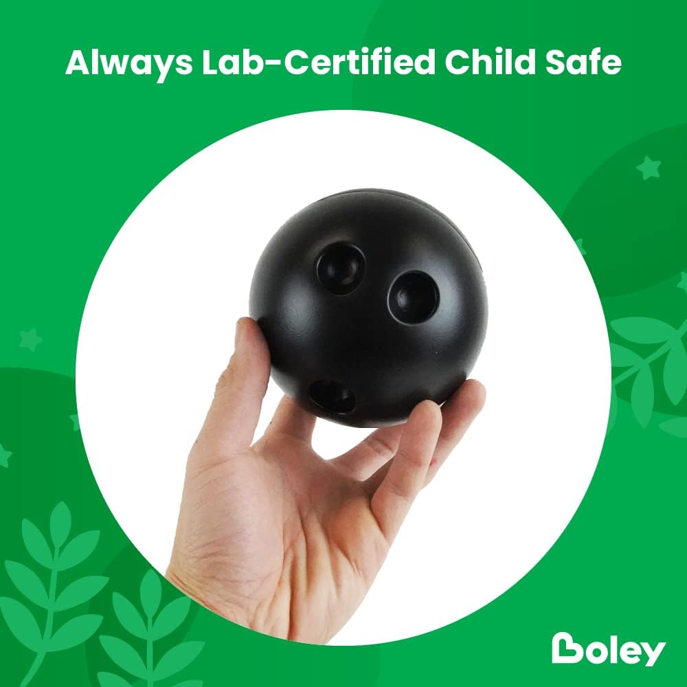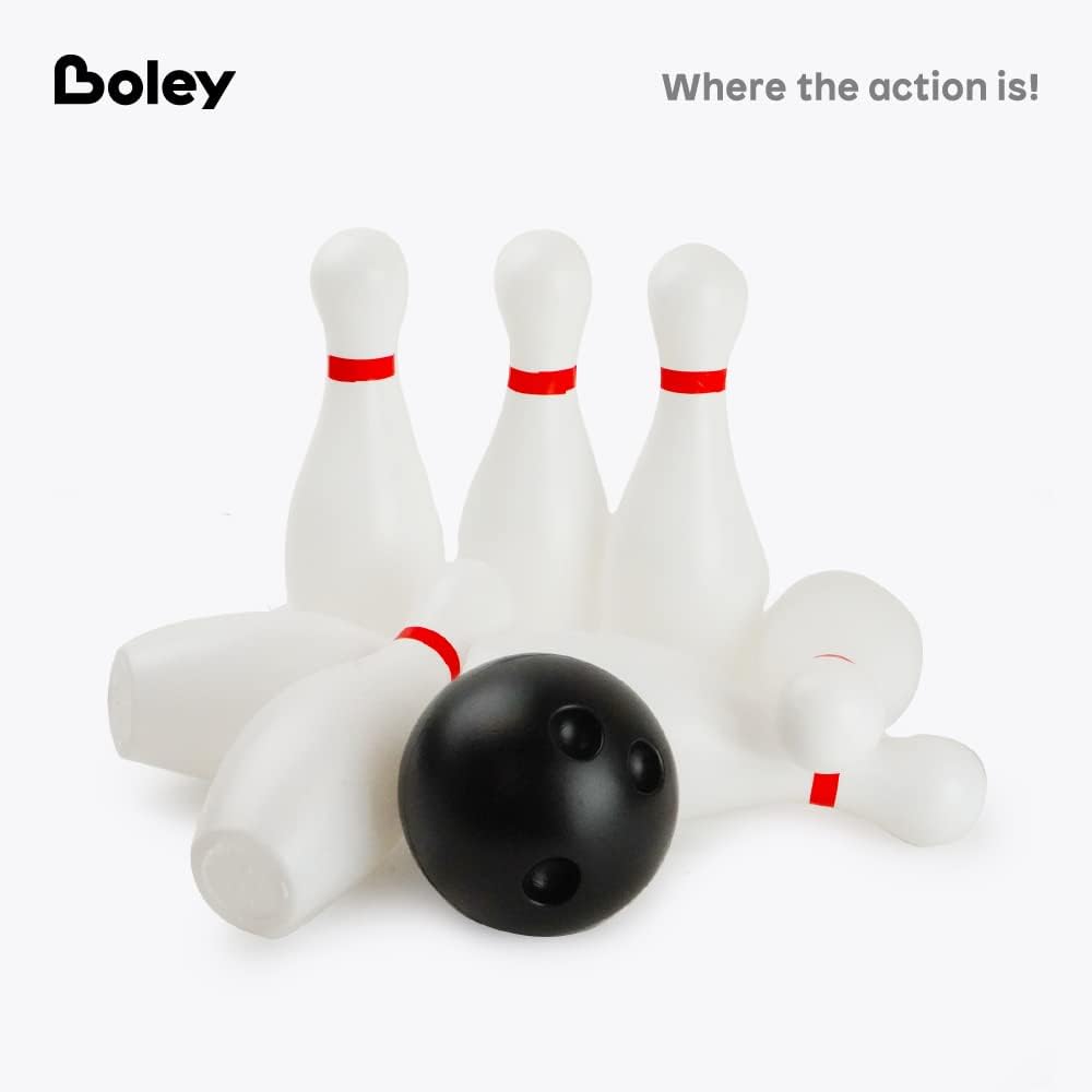 Comes with 10 brightly colored bowling pins and 2 small bowling balls made of sturdy yet lightweight plastic. Sized just right for kids while fun for the whole family! Spend some quality time outside in the backyard with a classic game of bowling. For ages 3 and up. Check out our sunny collection of outdoor toys and games for endless fresh-air fun! Boley’s Promise:
