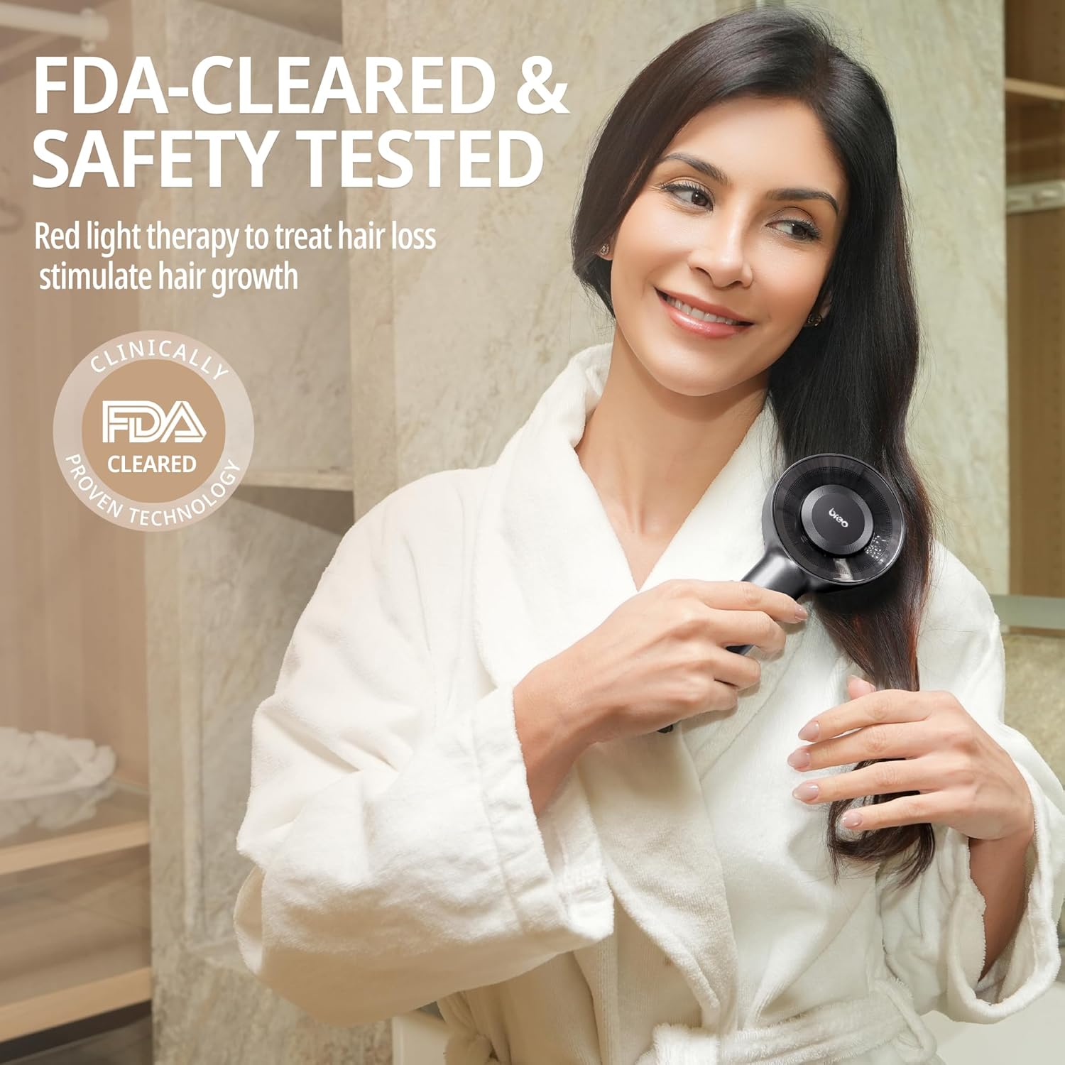 The Laser Hair Regrowth Comb ensures safety with smart sensing. It emits light only when touching skin, auto-off when lifted, avoiding eye damage.